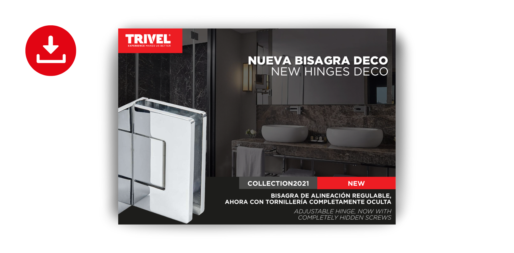 La bisagra DECO ha sido diseñada, siguiendo la base del exclusivo diseño de Trivel, que permite ajustar con una llave allen los desniveles entre paredes, marcos y vidrios de forma fácil y rápida, garantizando el correcto montaje entre pared-vidrio, o vidrio-vidrio.