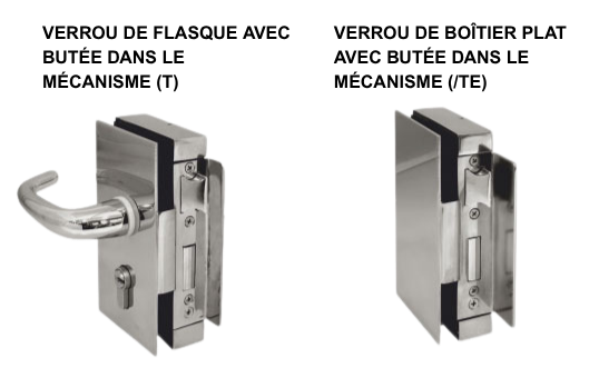 La butée souhaitée peut être demandée en ajoutant (/T), (/TE) ou (/SCU) derrière la référence de la serrure sélectionnée