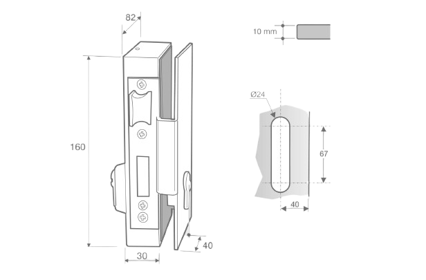 Pêne réversible actionné par clé, sortie pêne 10 mm