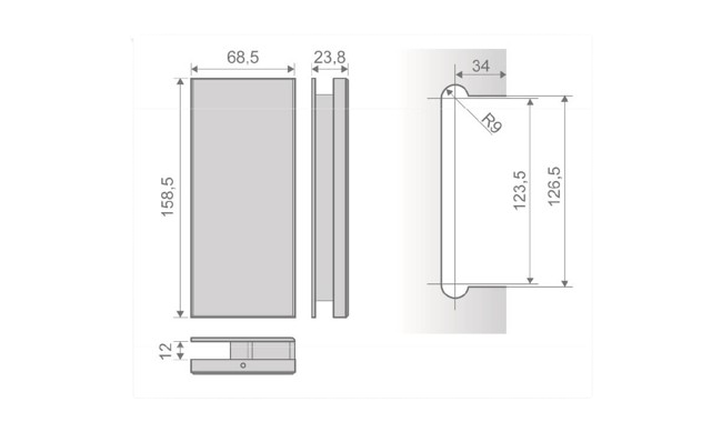 - Pour installations où la porte et le panneau latéral forment un angle de 90º
