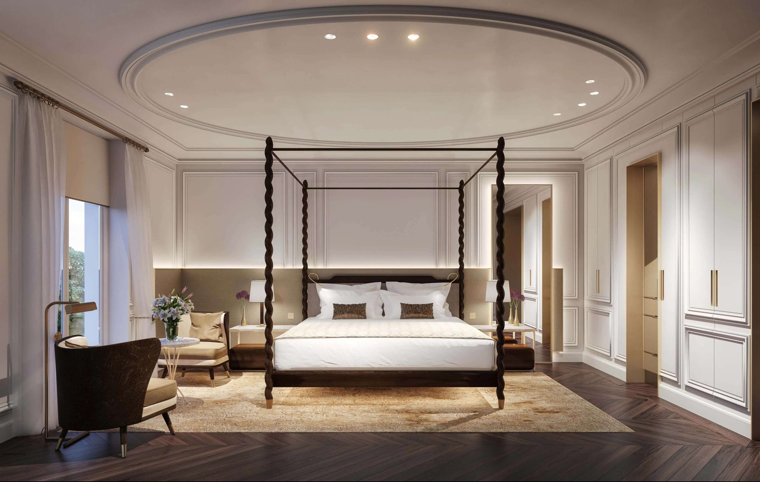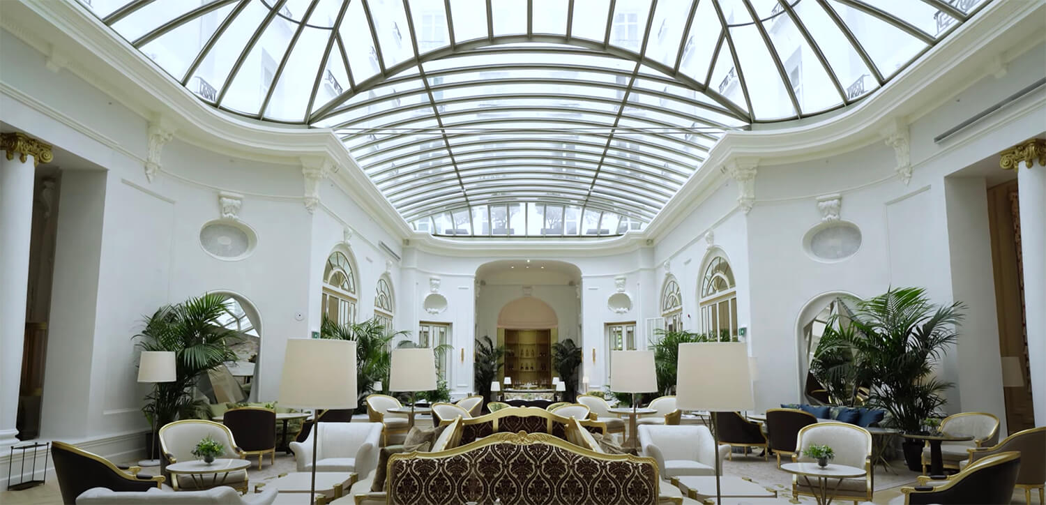 El hotel ha sido minuciosamente restaurado bajo la dirección del arquitecto español Rafael de La-Hoz y los diseñadores franceses Gilles & Boissier han conservado el estilo Belle Époque, con pinturas y esculturas del edificio original y otras piezas artísticas actuales.