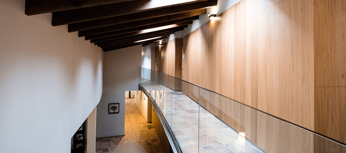 El diseño con las últimas soluciones en herrajes para entradas, puertas y accesos en vidrio, se integran con el conjunto del edificio original datado del s.XIII, y catalogado de Interés Nacional, y con el espectacular paisaje.