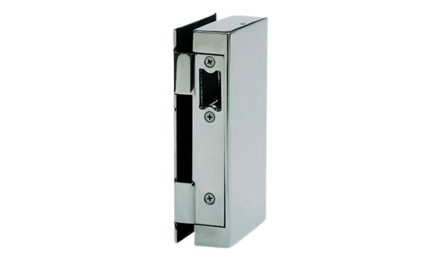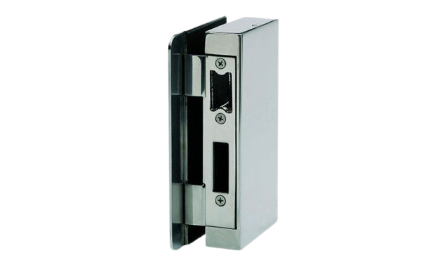 Picaporte eléctrico 12V AC/DC con desbloqueo, memoria y tope en la escuadra