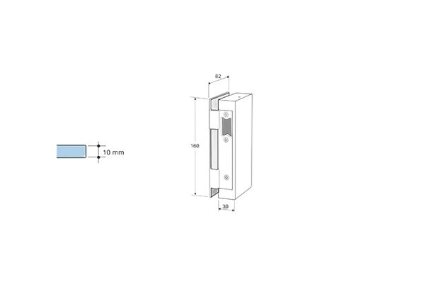 Picaporte eléctrico 12V AC/DC con desbloqueo y tope en la escuadra