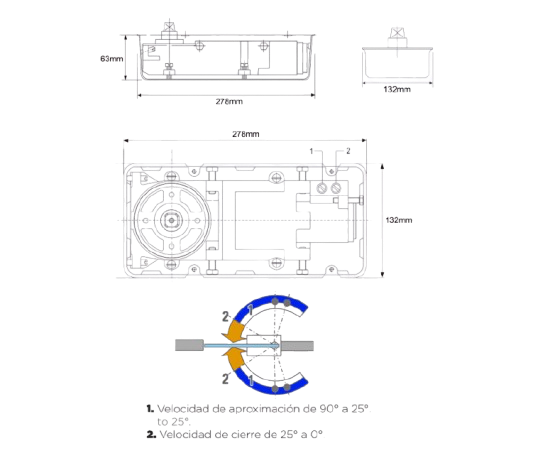 Productos / CIERRAPUERTAS SUELO / G75C200 / Cierrapuertas suelo con 2 velocidades de cierre, para puertas de grandes dimensiones