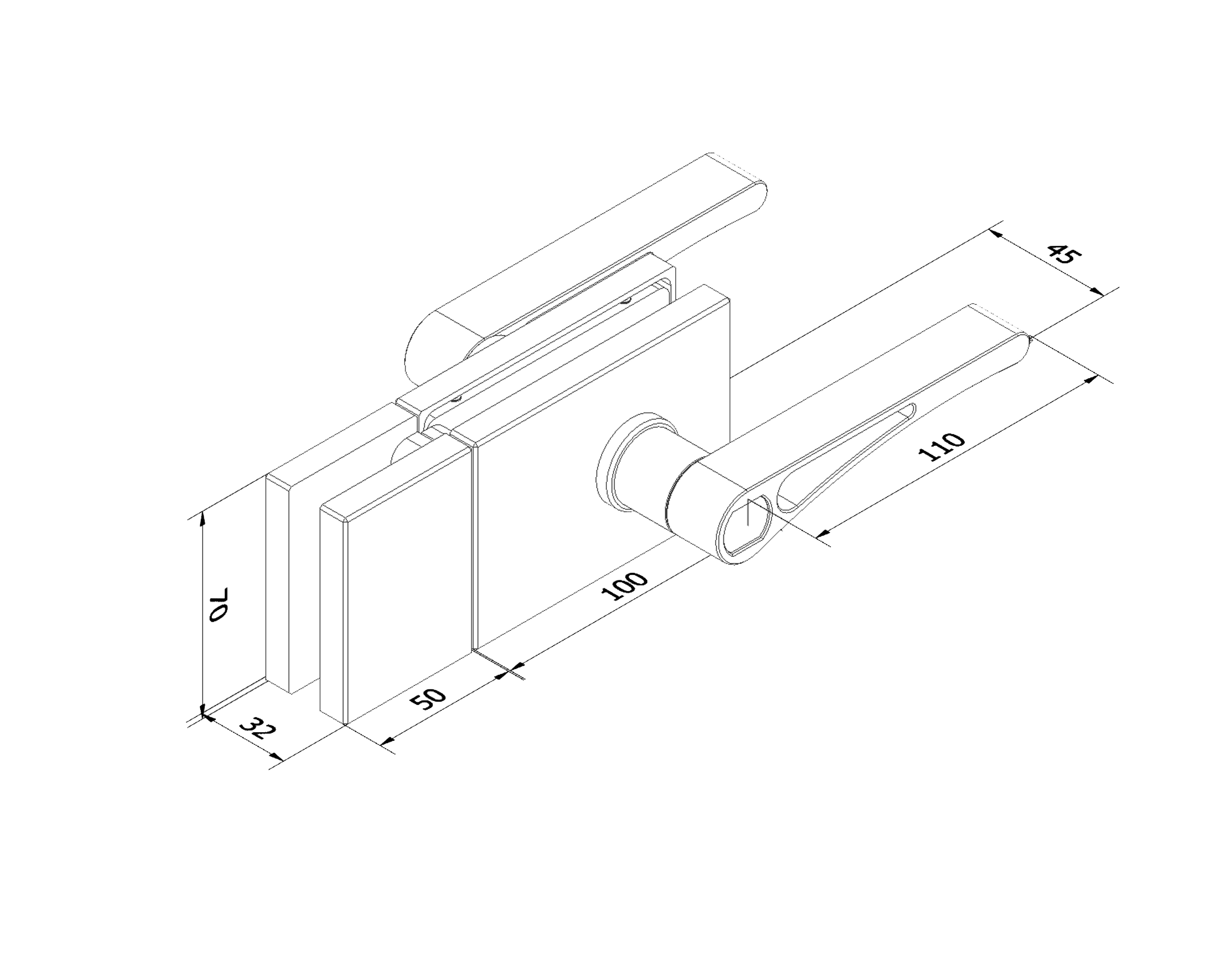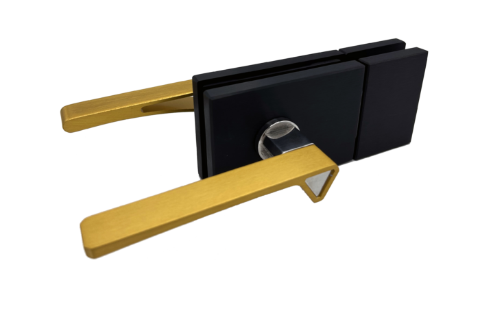 Conjunto cerradura con manillas COSMO y cerradero para vidrio