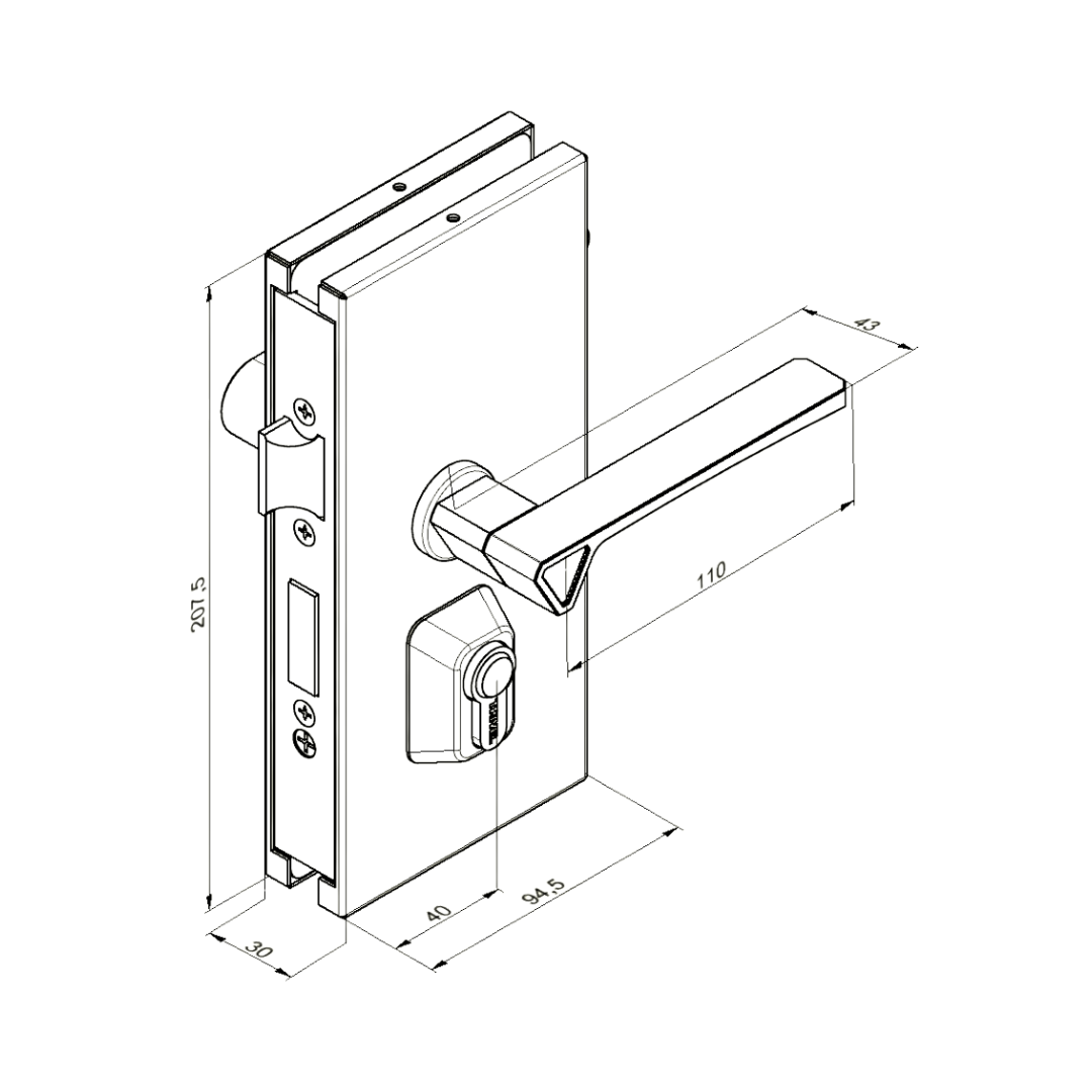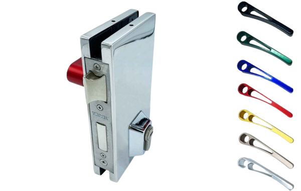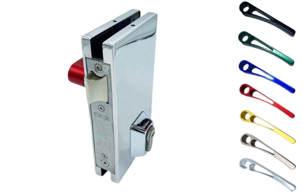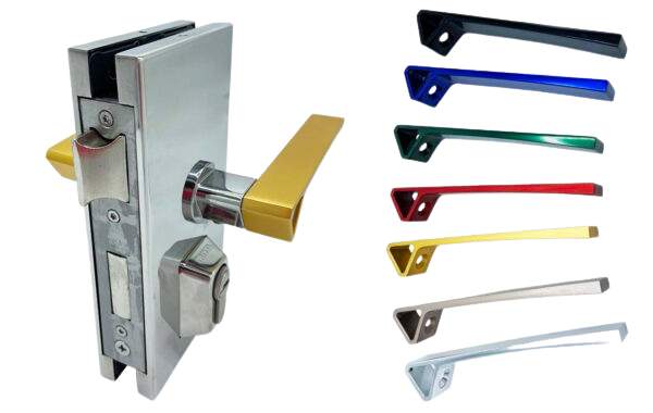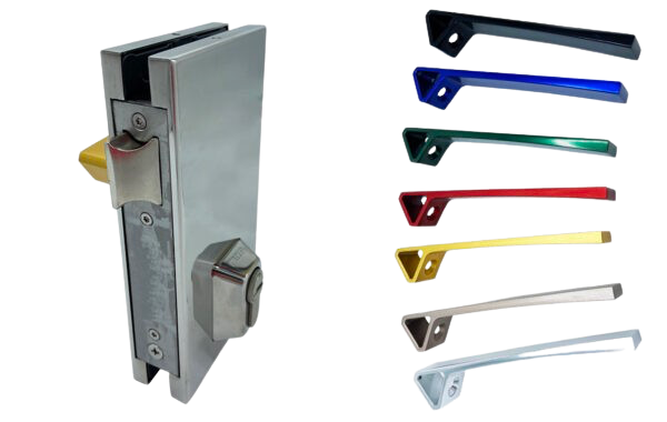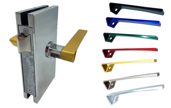 Manillas fabricadas en aleación de aluminio extrusionado y acabado anodizado en varios colores, reversible e intercambiable, gracias al diseño del adaptador entre manilla y cerradura fabricado en acero inoxidable.