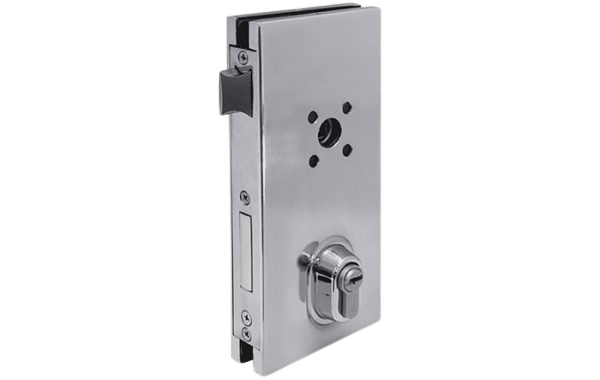 Las cerraduras para apertura exterior que se instalen con cerraderos para vidrio deben tener tope