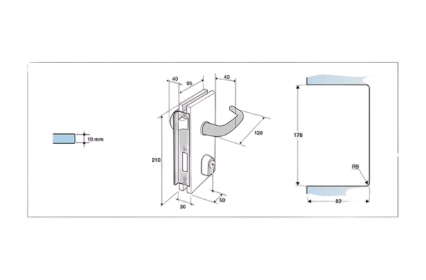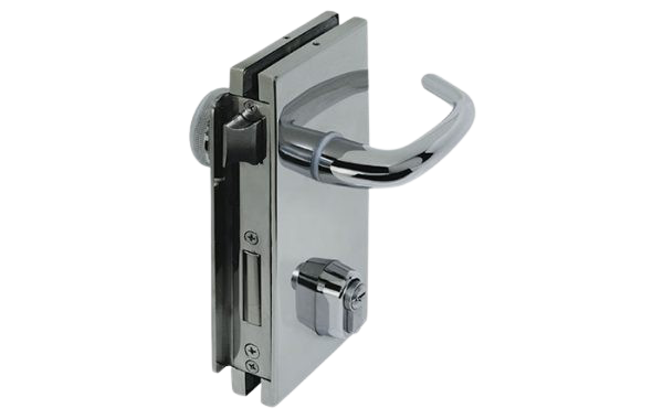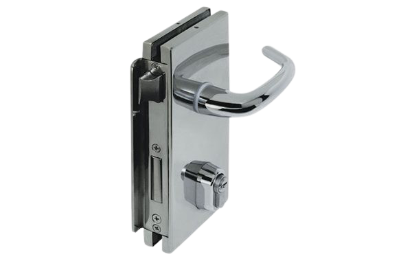 Las cerraduras para apertura exterior que se instalen con cerraderos para vidrio deben tener tope