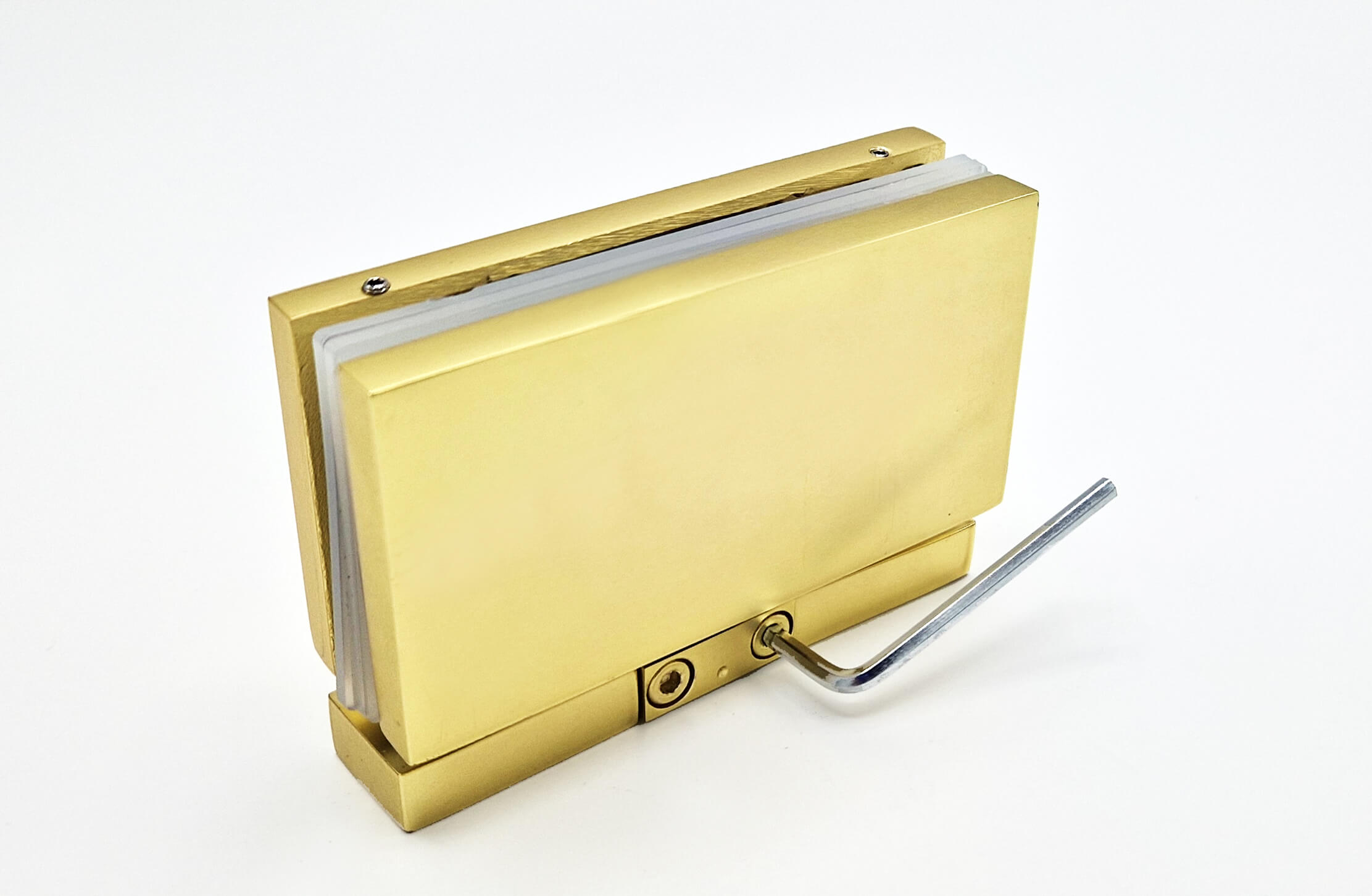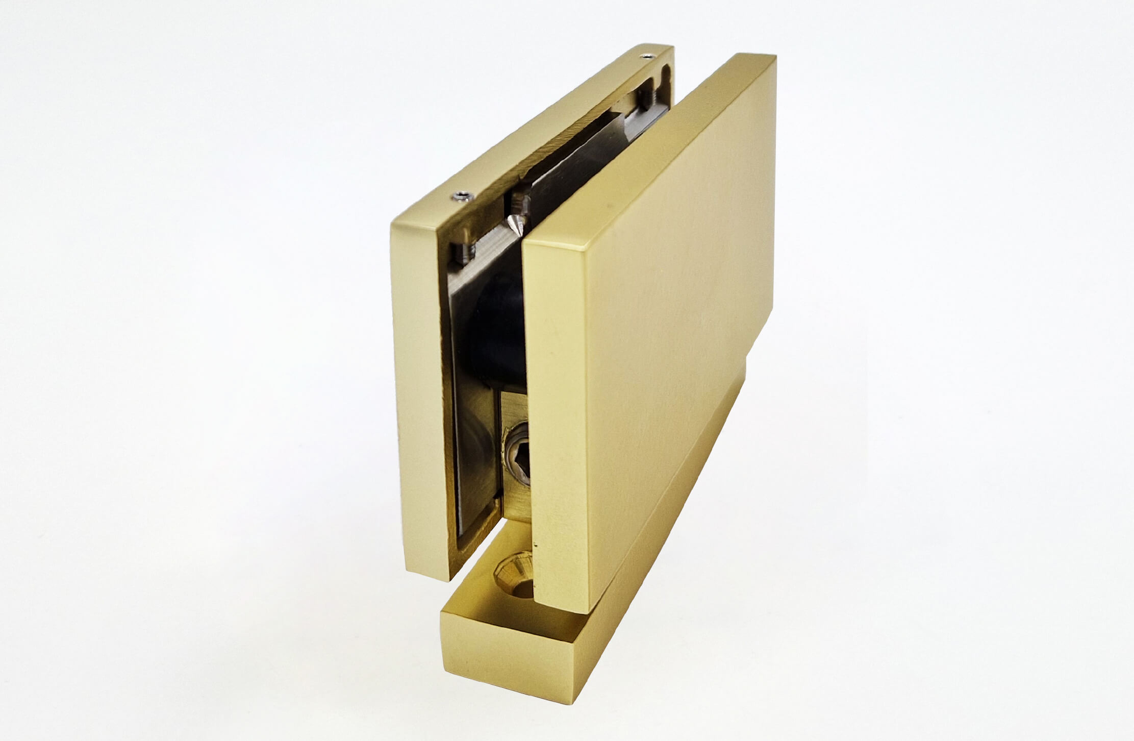 Bisagras de alineación regulable para puertas pivotantes, en este caso, para vidrios con espesor de 11.52 (5+5 laminado templado), y regulación grados “punto 0”.
